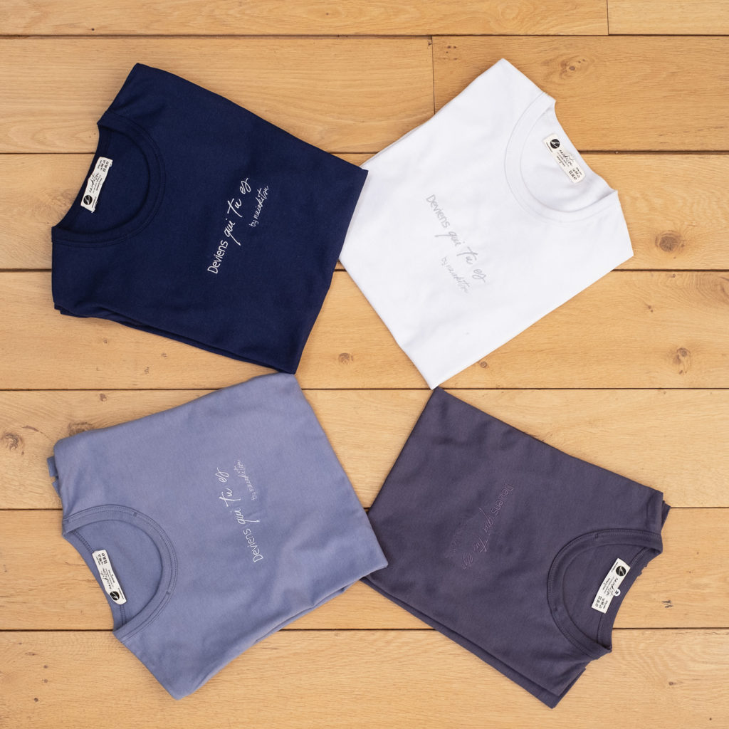 Nos t-shirts on les aime parce qu’ils sont pratiques, beaux et simples. Mais on les aime aussi parce qu’on peut les transformer. Un t-shirt manche courte se transforme en t-shirt manche longue, s’habille d’une capuche, d’un col ou de bracelets qui donneront un joli look personnalisé avec un effet de superposition.