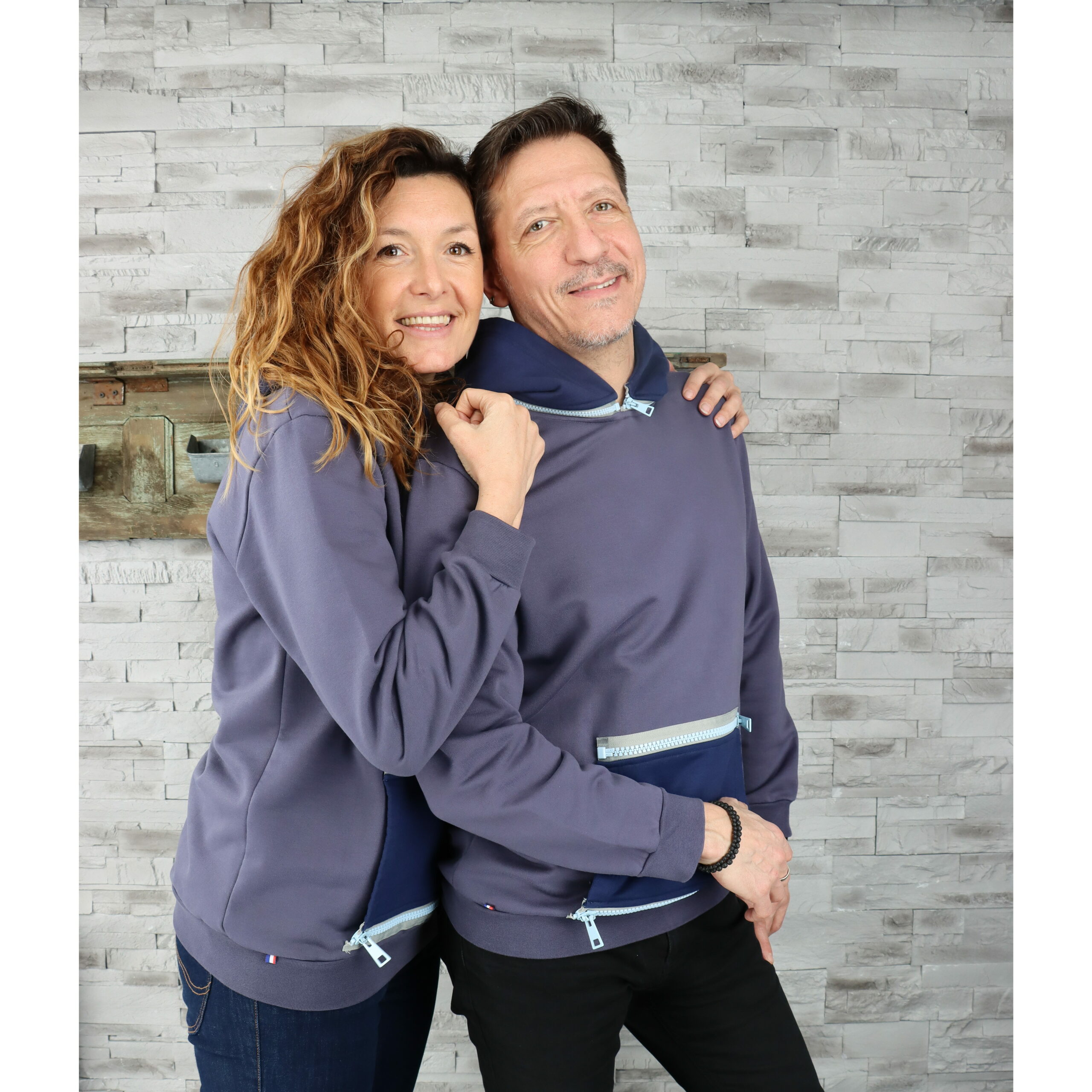 Notre sweat peut se porter seul, avec une poche, avec une capuche ou, avec une poche et une capuche !